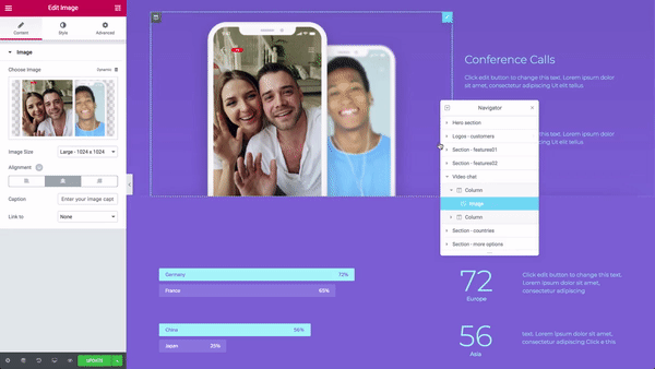 - You can rename all your sections, columns, and elements if you double click on the certain element/column/section and name them for better navigation throughout multi-layered websites.